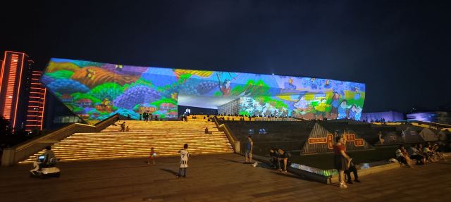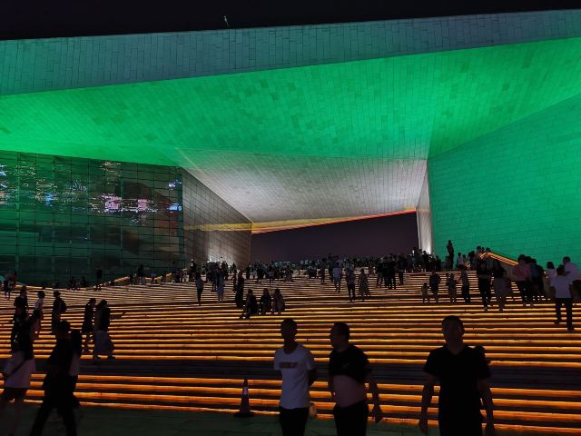 4分 满意大剧院白天晚上不一样,高台阶很来劲儿,上面的平台其实是剧院入口处,下面的平台才是一个特别之处。