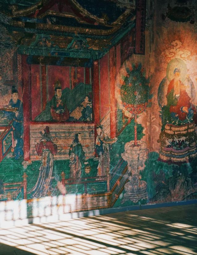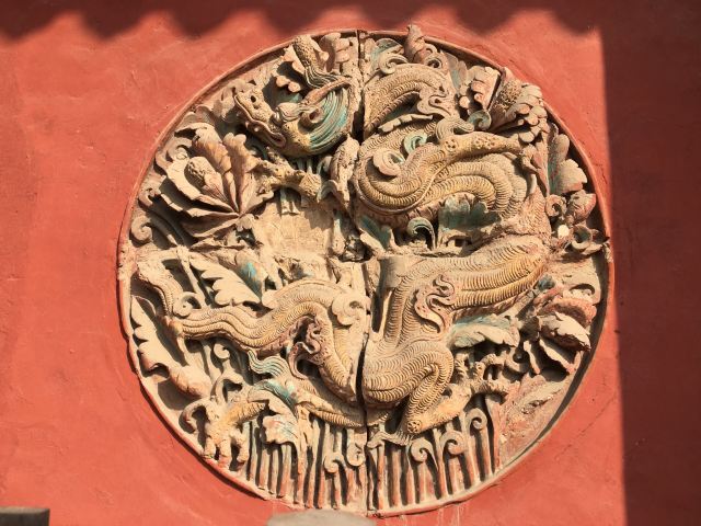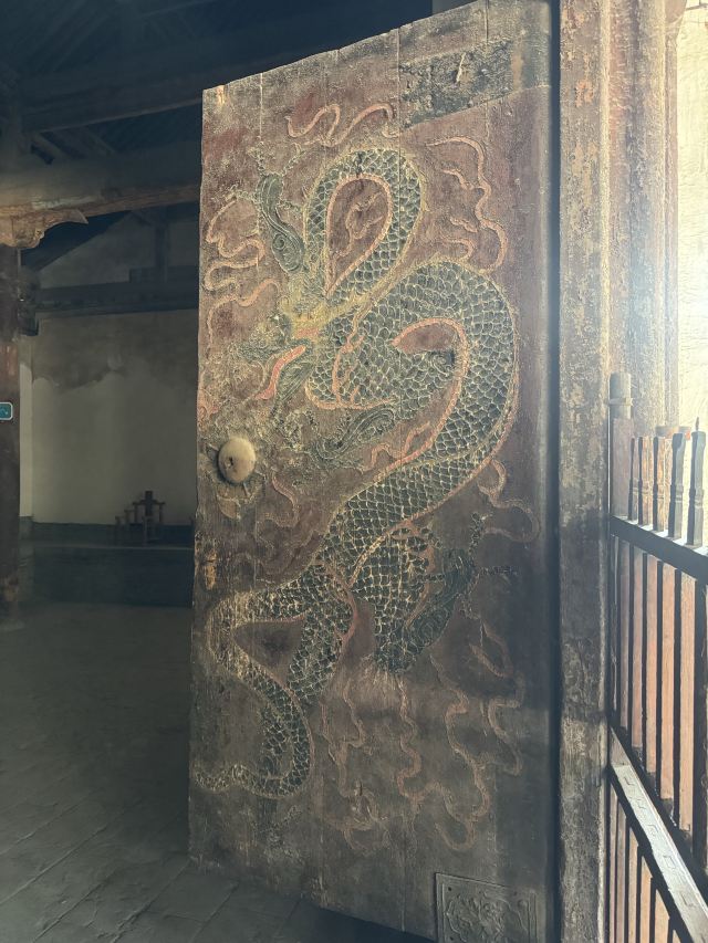 建筑特色 :窦大夫祠的整体结构以砖、木、石为材料,展现了元代建筑的独特风格和高超技艺。主要建筑包括乐楼、山门、献殿和大殿。乐楼为清代重修,山门两侧墙壁镶有四个团龙,古朴可爱。献殿和大殿连在一起,具有元代建筑的粗壮感,献殿顶部的八卦藻井保存完好,大殿板门为元代原装,上彩绘二龙戏珠,生动异常。此外,祠内还有赵戴文公馆和墓,攒尖顶水塔具有中西合璧的美学。