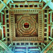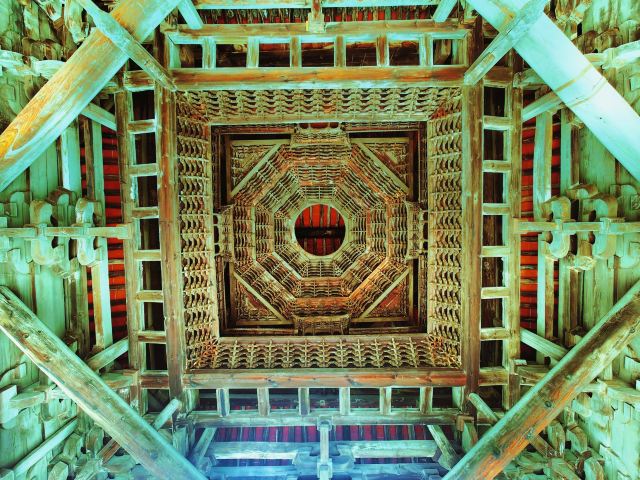 文化艺术 :窦大夫祠内保存有大量历史遗存,包括碑碣等珍贵文物,这些文物展示了古代建筑艺术、雕刻艺术及琉璃造型艺术。例如,献殿的八卦藻井全部由木块和木条交错层叠咬合构成,无钉子加固,全靠斗拱递叠而成,形成八卦样式,堪称一绝。