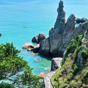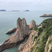 甲午岩景区:作为大陈岛的经典核心景区,有着“东海第一大盆景”的美誉,保存有大量战争年代的军事遗迹。漫步甲午岩景区,看旗峰映日,听飞虎惊涛,赏奇礁怪石,思海峡同胞。