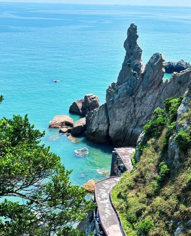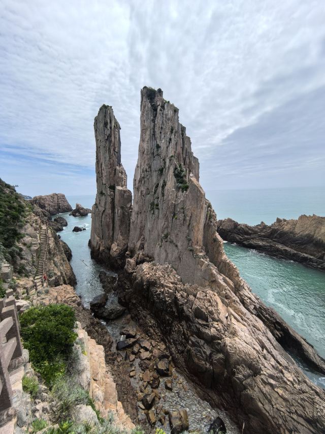 甲午岩景区:甲午岩是下大陈岛的标志性景观,被誉为“东海第一大盆景”。由两块巨大的干出礁构成,主体岩礁高35米,造型雄奇,气势磅礴。