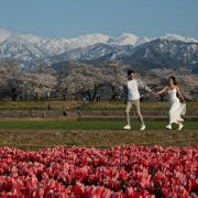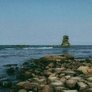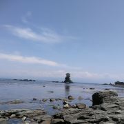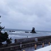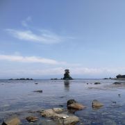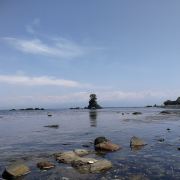 | 雨晴海岸位于富山县高岗市,是能登半岛国定公园的一部分。可通过乘坐当地的通勤列车冰见线到达。每年10月末至次年的6月初,在天气晴好的情况下可能会在海岸边见到对面立山连峰冠雪的奇景。 |
