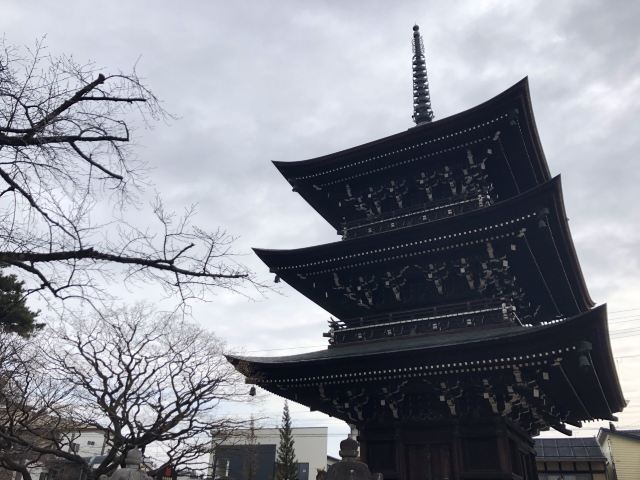 国分寺以寺内1200多年的银杏树闻名,冬日里,银杏树的叶子落光,看起来有一点沧桑的岁月感。秋天里来看应该是极美的。寺内的三重塔在靠近正中心的位置。