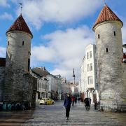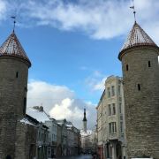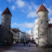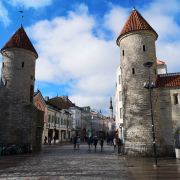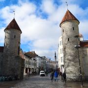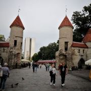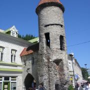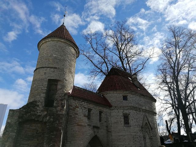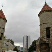 爱沙尼亚之门是塔林老城的主要入口之一,位于市政厅的东部,由两座圆塔组成,是老城城墙的一部分。这两座圆塔相互呼应,建于14世纪,如今只有其中的一部分是原始结构。