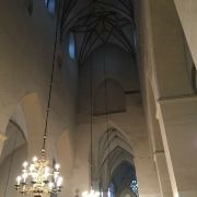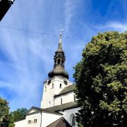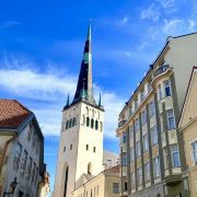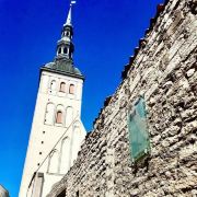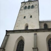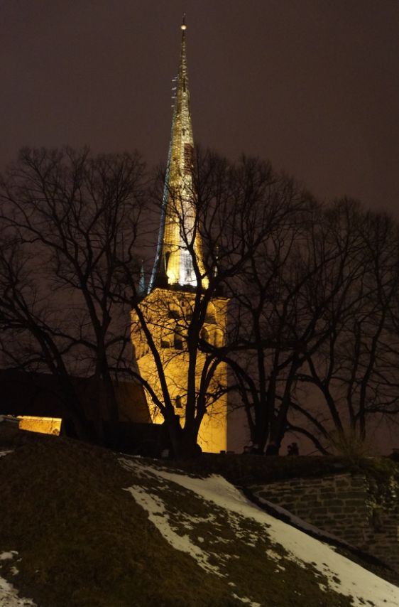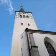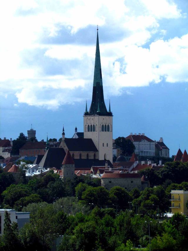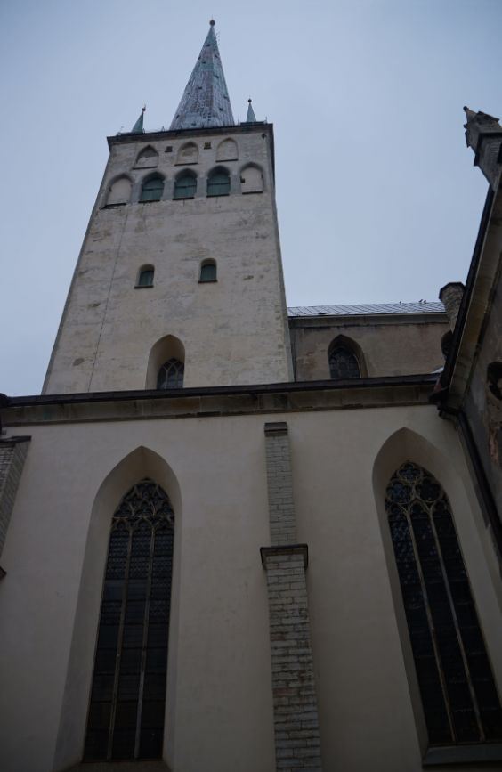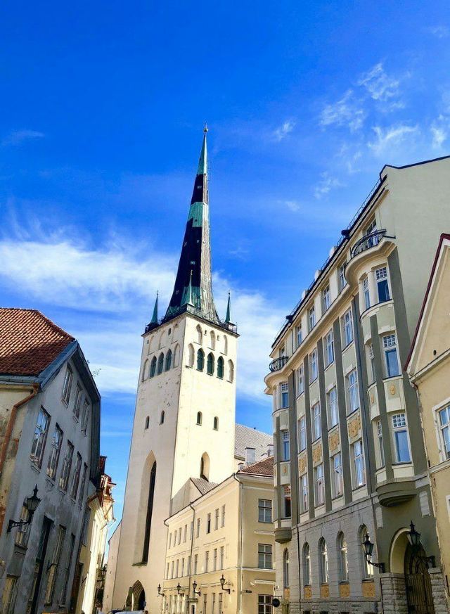 圣奥拉夫大教堂建于13世纪,是一所具有哥特式风格的教堂,教堂原本高159米,曾经是世界上较高的建筑(1549-1625年),可惜毁于战火。如今游客看到的教堂是后来重新建造的,高约124米,是目前塔林老城的较高的建筑,也是塔林的地标之一。