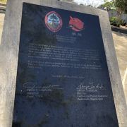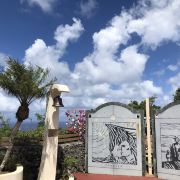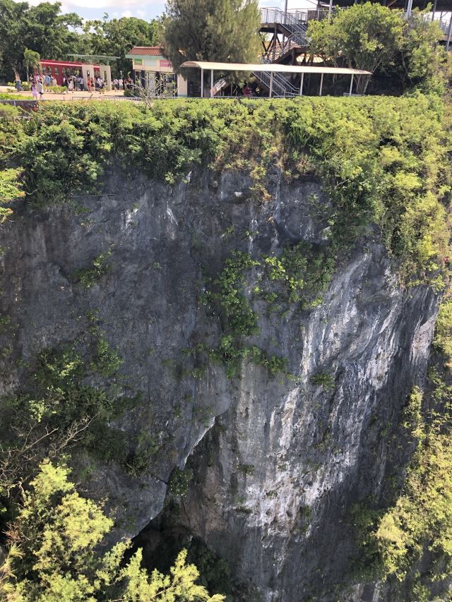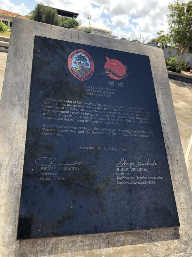 从观景台下来回到情人崖公园内,这里除了介绍爱情故事的石碑外,还有一些贩卖纪念品的店家,店家除了卖关岛纪念品,也有卖冰淇淋、饮料之类的小东西,其中比较特别的是一种小吃是椰子水加萨西米。萨西米指的是椰子肉,这是当地的独特吃法,将椰子肉淋上酱油跟芥末,口感与生鱼片有异曲同工之妙。