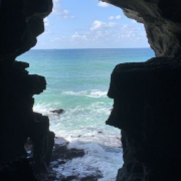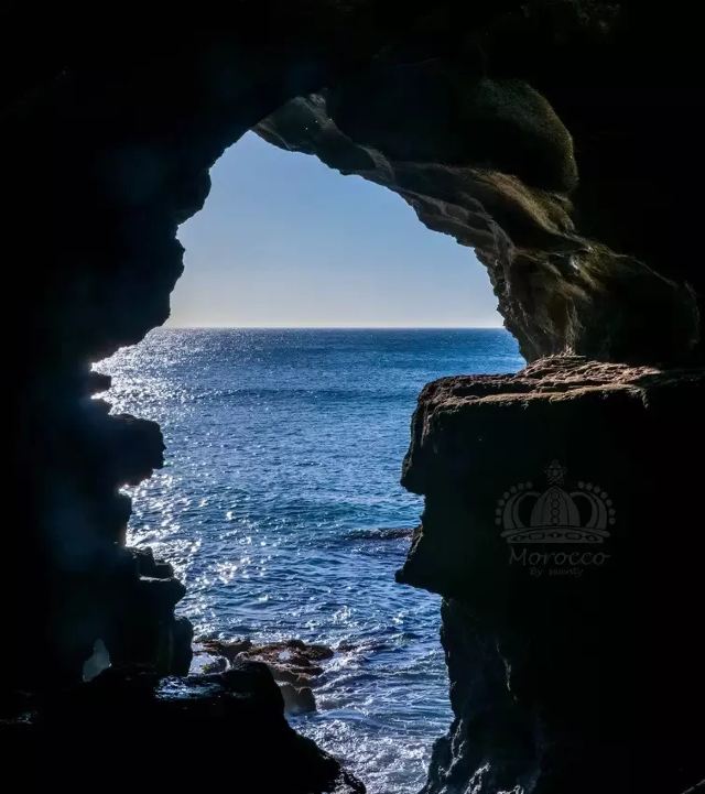 在丹吉尔市区北侧濒临海边的山上,洞不算大,从洞口抵达里面仅几十米的样子,拐一个弯便看到头了。尽头是一个朝向大海的洞口,恰巧在海平面之上一点儿的高度,因此透过洞口可以看到浩瀚的大海,海鸥飞翔在空中。如果有时间,则可以看到海面上日出日落的壮丽风光。