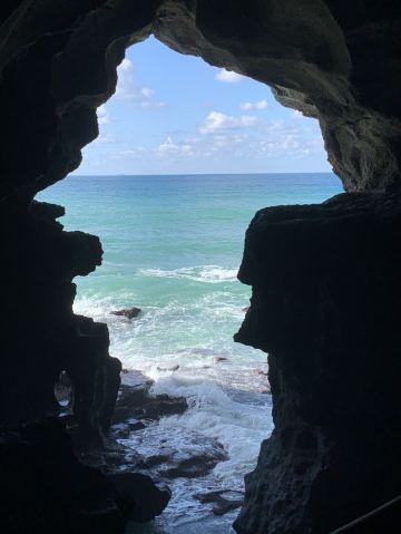 从洞口出来,有一个小广场,围着一圈六七家咖啡店和纪念品小店,中间可以停车。很适合悠闲的坐一会儿,喝杯咖啡,吹吹海风。