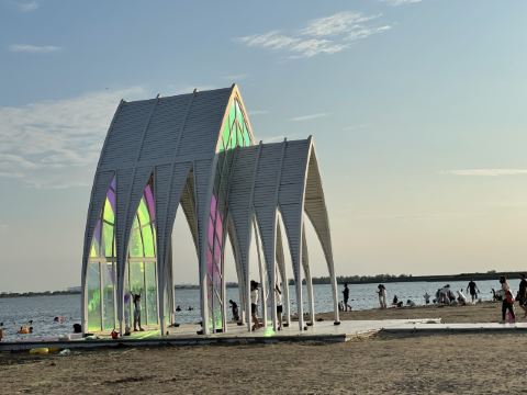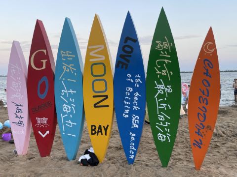 揽月湾旅游景区,坐落于美丽的“渤海明珠”曹妃甸新城南部滨海海岸带,距离北京240km,离天津100km,是“离北京最近的海”。揽月湾旅游景区总规划面积14350亩,海域面积7759亩,沙滩面积223亩,岸线长达12.8km,整个景区形似一弯新月,悬挂于美丽的渤海湾,日出东方、夕阳西下、海天一色,呈“海上生明月”之景,展“上九