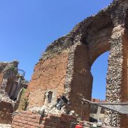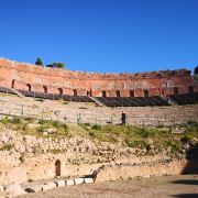 5分 超棒在历史上西西里岛曾经被迦太基、希腊、罗马帝国、阿拉伯人和诺曼人等相继占领过,留在陶尔米纳的著名历史遗迹就是始建于公元前三世纪的希腊剧场。剧场位于一处山崖上,巍峨的埃特纳火山和美丽的海湾就是天然的背景,环形的观众席和残缺的立柱显示出悠久的历史,至今还会在这里举办夏季戏剧节。