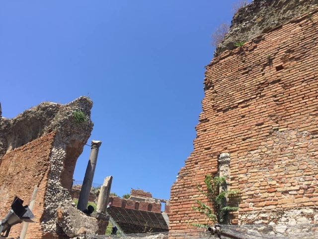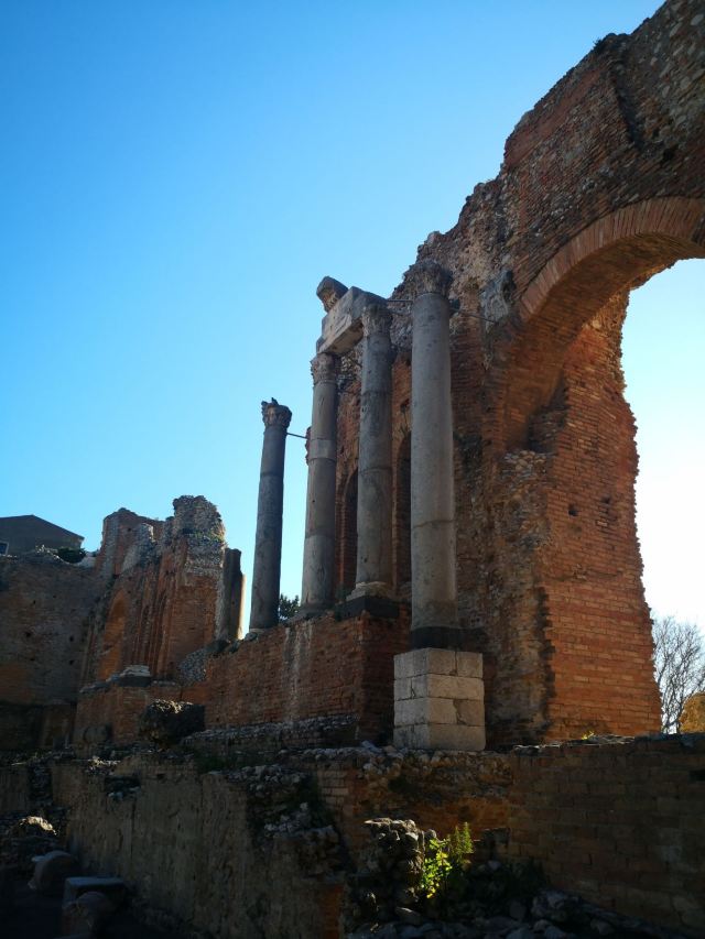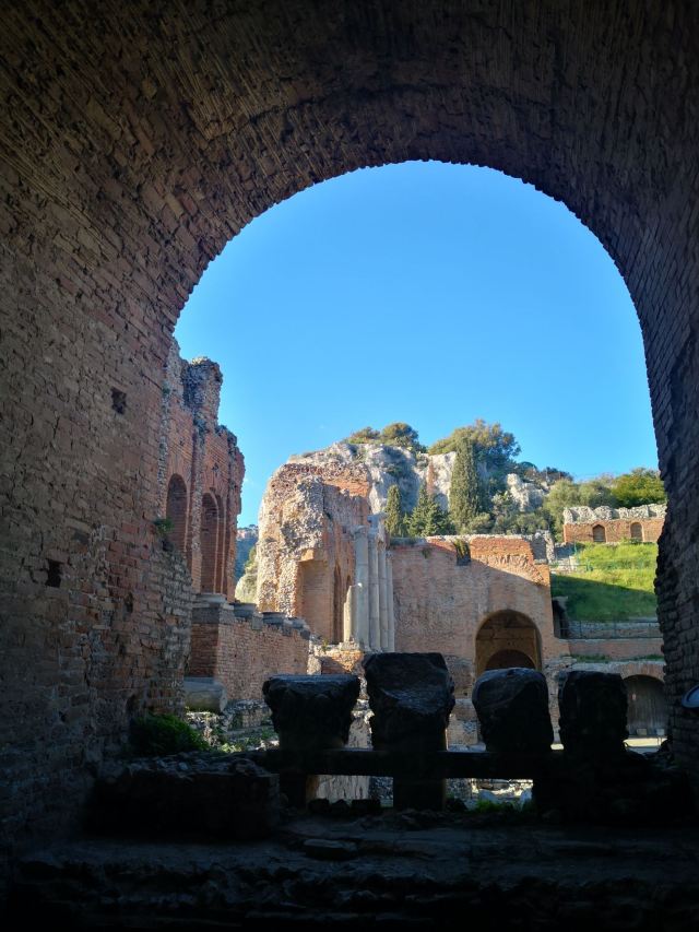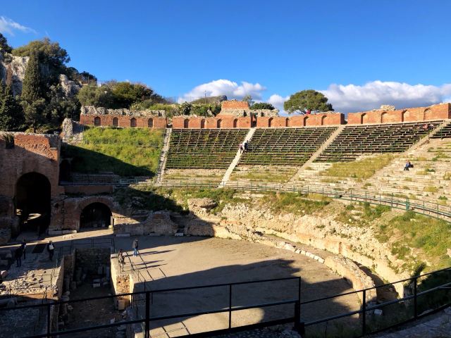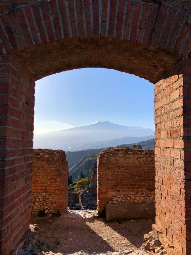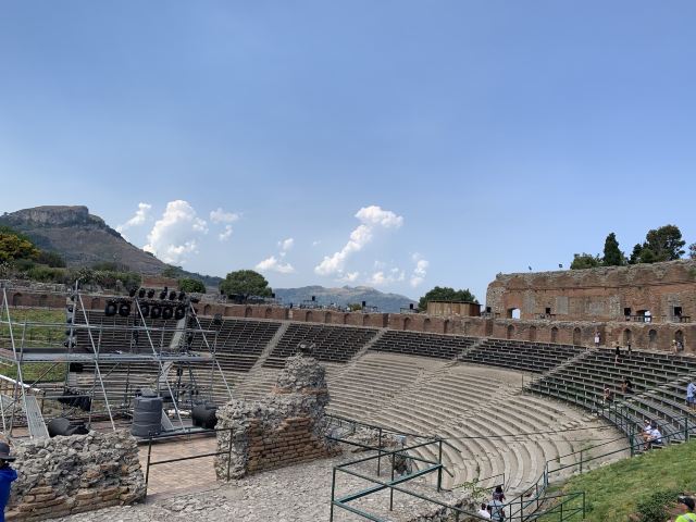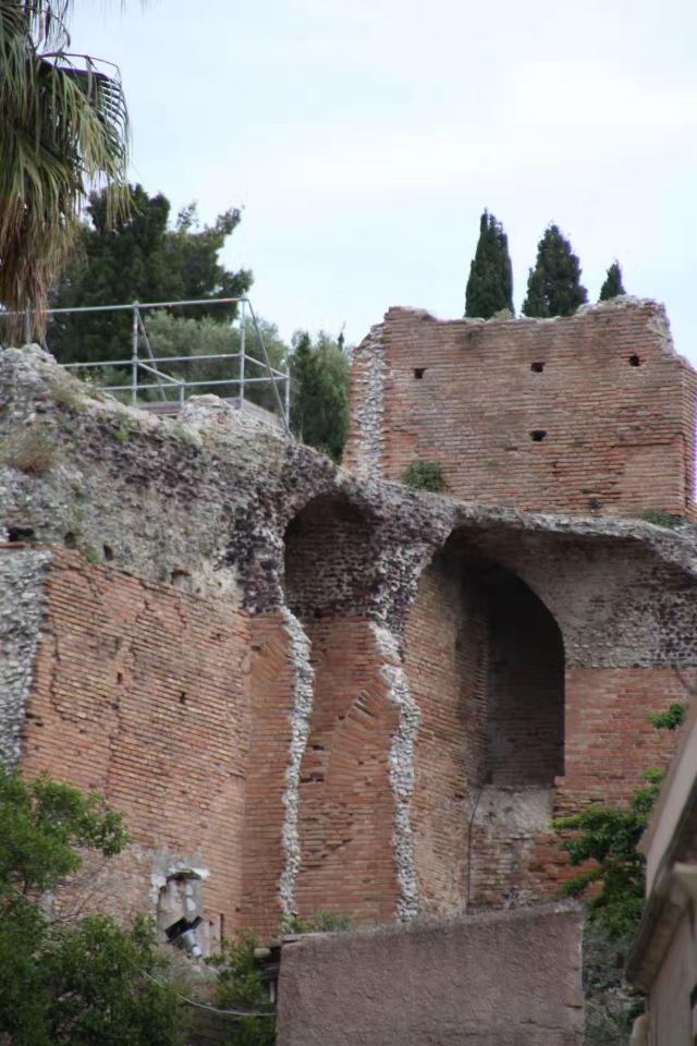 剧院背山面海,埃特纳火山赫然在目,地中海碧波荡漾。其整体气度恢宏,不可一世,实属罗马人以坦荡之胸怀,表达其对文明之敬意,只是崇敬,无关立场。