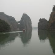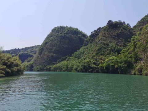 夷望溪是桃花源外围景点中美的景点,是常德十景之一。位于常德市桃源县兴隆街乡,这里景色秀美、山水怡人,被称为常德的的“小桂林”。夷望溪,亦称怡望溪,有望之心怡的意思,乍听起来,似乎又是一道被世间所遗忘的山间流水。的确,这几乎是个与世隔绝的地方,一个静宓与神秘的地方。夷望溪,一个青山凝黛,绿水悠悠的妙境,仿佛又到了桂林的漓江,恰好这里也有个象山,酷似一只刚从水中沐浴上岸的老象。两岸也是青山如屏,翠竹成荫。夷望溪水清澈透明,如同碧玉,无怪乎诗人将它称作“沅江小桂林”。这山有的如大象、有的如雄狮、有的如麒麟、有的如钟鼓,还有一座山崖壁上似挂着一弯明月。在河堤与山脚之间是一些农田,偶尔可见两三个农夫在叱牛耕耘,悠闲的哼着些土里巴唧的用牛歌,旁边总有几只黑身而白翼的笨鸟,在周围停立,似乎一点也不怕人,等到农夫和耕牛走近时,才怏怏地窜飞至另一边去,依就呆呆地盯着那农夫和耕牛,真是一幅写意的《桃源隐耕图》。