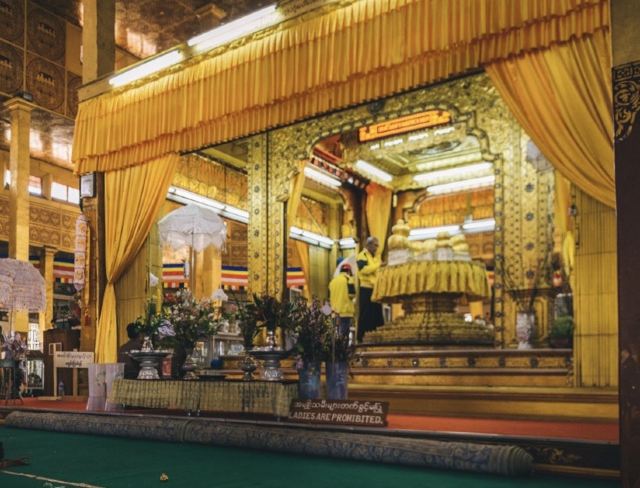 瑞耶瓦寺坐落于娘水镇北,距离茵莱湖10公里。寺庙建于19世纪初,为全柚木建造而成,寺庙为特别的是其椭圆形的门洞,雕刻非常精美,装点着彩色马赛克和鎏金点缀的壁龛也很有特色。寺庙里有不少修行的小和尚,可以在此看到僧人的日常生活。