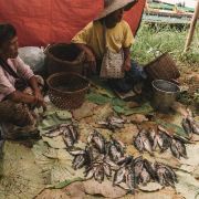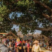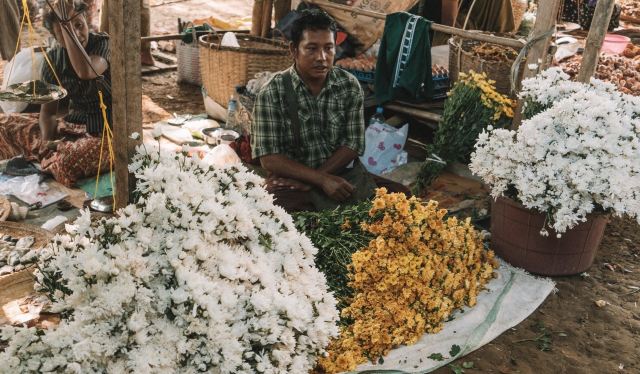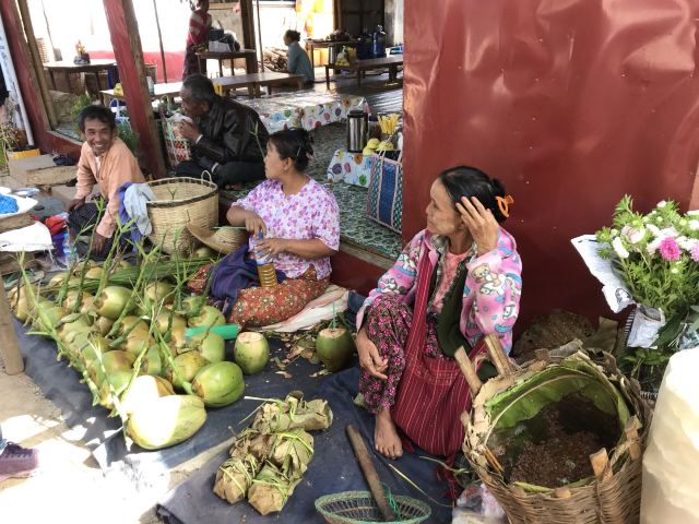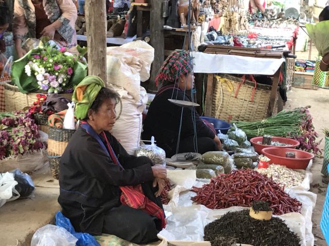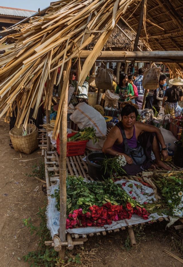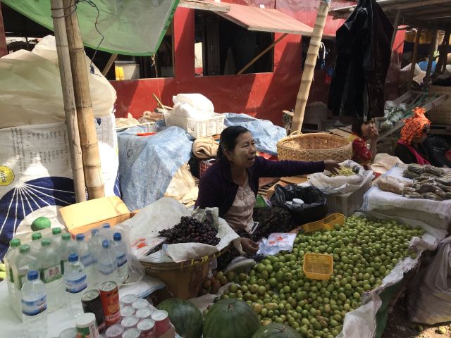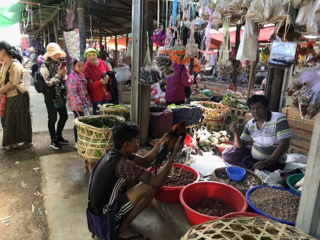 市场真是包罗万象,从花卉,到湖区明星——番茄,到棕糖,到漆器、木器、银器等工艺品,应有尽有,又卖小吃和衣服的,甚至还有剃头匠出没。我们在这里吃到了超赞的掸族豆腐面和鸡肉粉。