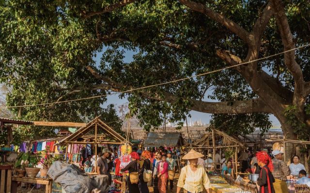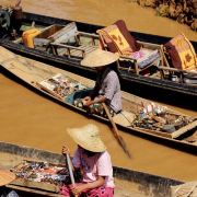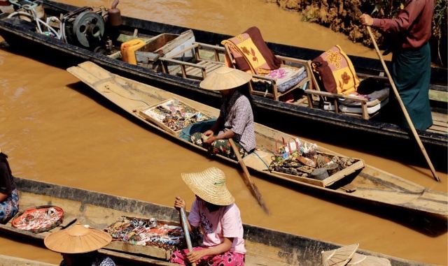 “伊玛瓦”(Ywama)水上集市是缅甸较大的水上集市,每五天举办一次。游湖的那天,若是“伊玛瓦”水上集市没开,也可以参观其他当天开放的市场。这些市场都有卖各种各样的日用小商品的当地人,渔民把他们的鱼干和鲜鱼拿到这里交易,妇女们也会带着许多新鲜的蔬菜、水果来叫卖,而山民们则用牛车运来了土法制作的蔗糖和山货来这里销售。
