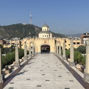 在城市的各个地方,基本都能看到这座教堂。第比利斯圣三一主教座堂内可看的东西不少,东北角有马赛克圣母像,东南角有十字架和手抄本《圣经》展柜,西北角还有云母耶路撒冷圣城模型等。在大教堂西北角墙外,还保留有一小片亚美尼亚墓地,那里是第比利斯亚美尼亚人的先贤祠Pantheon,埋葬了几十位亚美尼亚人的文艺、政治界名人。