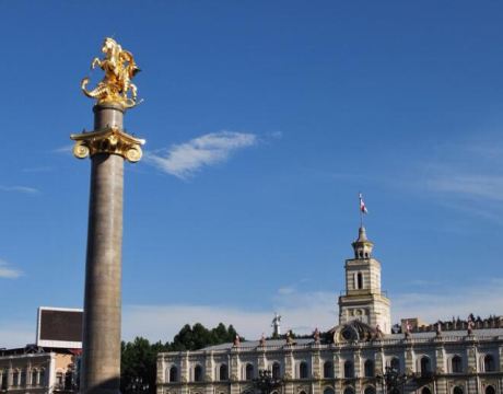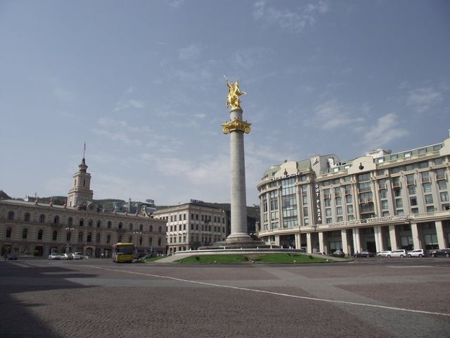 位于第比利斯市中心的第比利斯自由广场,始建于19世纪沙俄统治的时期,原本这里叫埃里温广场,在苏联时代,这里改名列宁广场,1991年格鲁吉亚独立后,改名第比利斯自由广场,如今广场上的列宁像已经换成了圣乔治屠龙圆柱。