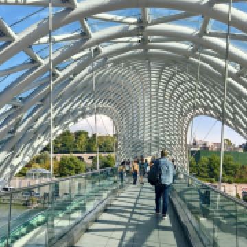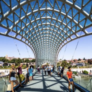 跨越 第比利斯 Mtkvari河的新步行桥“ 和平 桥”是由 意大利 建筑师Michel De Lucchi和 法国 照明设计师Philie Martinaud设计的。这座用玻璃和铁建造的步行桥连接了 第比利斯 老区和新区,并设有一个150米高的顶棚。5月6日,步行桥正式开放,并成为 第比利斯 的一个现代设计地标。