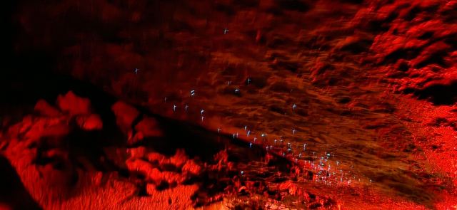 “蒂阿瑙”一词在毛利语中,代表“有漩涡急流的岩洞”,这指的就是萤火虫所居住的洞穴,它被认为是“世界上不同寻常的石灰岩洞旅游之一”,如果你去南岛峡湾地区游玩,可别错过了它。上世纪40年代,对毛利古老传说心驰神往的当地探险家劳森·布劳斯(LawsonBurrows),花费三年时间探寻南岛各处岩洞,终于在蒂阿瑙湖西岸找到了这个仅在毛利人传说中出现的岩洞。布劳斯爬进岩石缝里,穿过入口处,洞穴里无数萤火虫发出的光芒映入了他的眼帘。此后这个岩洞就成了蒂阿瑙湖畔引人入胜的去处。事实上蒂阿瑙萤火虫洞只不过是一个极其庞大的岩洞的下层,这个巨大的岩洞一直向下延伸到它北面数十公里之外的米尔福德峡湾下面。只能通过小船才能抵达洞穴深处,沿途经过大大小小的瀑布、漩涡,终抵达微光闪烁的洞穴。在导游详尽的解说之后,参观的人们被分为数个小组,乘坐小船进入洞穴参观。萤火虫发出点点蓝光,宛若满天星斗,你会感觉如同置身幻境。