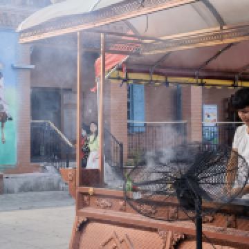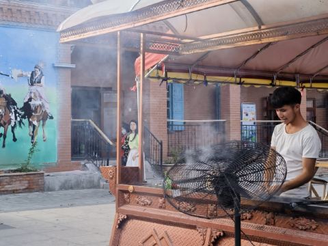动的壁画,炉上一串烤肉,啃着西瓜的小孩,一扇扇油漆斑驳的旧门,粗犷简洁的红砖院墙,好似一幅岁月静好的画卷。