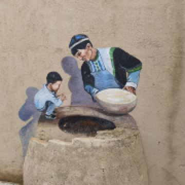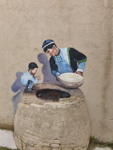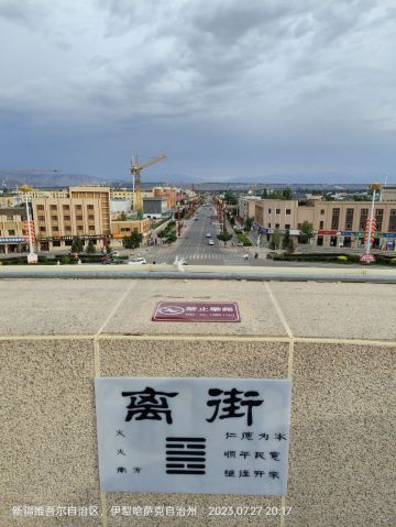 离街八卦城其中一条街道,“留住一座城,记住一条街”,这是八卦城人常说的一句话,“城”指八卦城,“街”指离街民族风情步行街;熟悉新疆的人都知道,到伊犁,必游八卦城;到八卦城,则必游离街;乾、坤、震、巽、坎、离、艮、兑八卦城一环八条街,离街就是其中之一;“离”在易经卦爻中代表火的意思,象征着吉祥喜庆,红红火火,因街区刚好处在离卦位置,被称为“离街”,离街总长1700米,总面积约9.2万平方米,由7条巷道和多个特色院落组成,自古有着深厚的文化底蕴,集乌孙文化、丝路文化、草原文化、易经文化等于一体;按照“修旧如旧”设计理念,斥资对离街进行升级改造,保留现有民居院落,在居住功能、邻里结构不变的基础上逐步向旅游服务转型,形成民宿、美食、民族特色产品为一体的休闲街区,温暖的气息,亲切的民风,古而不旧,新雅别致的民宿院落,盛开的鲜花,色彩艳丽的雕塑,飘逸灵动的壁画,炉上一串烤肉,啃着西瓜的小孩,一扇扇油漆斑驳的旧门,粗犷简洁的红砖院墙,好似一幅岁月静好的画卷。