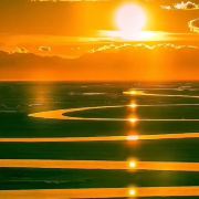 九曲十八弯位于阔克苏大峡谷景区,在此可欣赏阔克苏河在巍峨天山映衬下的秀丽美景。阔克苏河在阔克苏大峡谷宽广的谷底曲折流转,如蛟龙过境迂回向前,形成南北长约5600余米、东西宽约2000余米的九曲十八弯。周围群山环绕,山峦重叠,谷间河水平缓,波光荡漾,河岸植被郁郁葱葱,炊烟和着林间轻雾,牧民的毡房若隐若现点缀其间,晨曦落霞中隐现着山峦柔美的线条,意境优美。