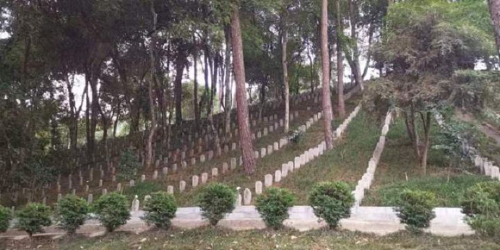 微信小程序国殇墓园位于腾冲县城西南的叠水河瀑布畔、来凤山国家森林公园北麓,是为了是为纪念抗日战争时期中国远征军第二十集团军攻克腾冲战斗中阵亡将士而建的墓园,目前是中国规模大、保存也完整的抗战时期正面战场阵亡将士纪念陵园。这里埋葬着3000多名中国远征军将士和十几位盟军官兵,几乎每一个到腾冲的中国人都会来到这里祭拜先烈。一进门房,右手边书店有很多关于腾冲和远征军的历史书籍,接着就是两个展厅,东西分布,陈列着相关的战史资料和实物,可以一睹先烈的丰姿笑貌。墓园的主体建筑——大门、甬道、忠烈祠、小团坡烈士墓、纪念塔,坐落在一条中轴线上,依次递进,逐层升高。而在墓园大门不起眼的地方还有一个小小的“倭冢”,是战后为日军收尸立的坟。由大门经长甬道沿石级而上至第一台阶,再沿石级至第二台阶的挡土墙,上面嵌有“碧血千秋”隶书刻石,第二台阶上,建有庄严肃穆忠烈祠,为重檐歇山顶仿清建筑。为供奉抗日阵亡将士英灵的殿堂。绕过忠烈祠,是立满墓碑的肃穆陵山。周边的山坡上埋葬着3000多名抗战阵亡将士的骨灰,另一边是在腾冲抗日战争中牺牲的美军将士夏伯尔等14人的纪念碑。爬上山顶,上面是中国远征军第二十集团军光复腾冲阵亡将士纪念塔,塔座正面刻有李根源书写的“民族英雄”四个字,其余三面刻有第二十集团军总部所撰《腾冲会战概要》。目前园区扩建的滇西抗战纪念馆已经建成并开放,其开放关闭时间和整个园区一致,里面收藏了很多珍贵文物,包括和顺抗战博物馆所藏文物也已经全部迁到此馆)。