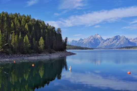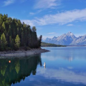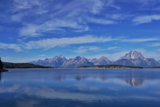 杰克逊湖位于大提顿公园北面,是美国海拔较高的一个天然湖,位于海拔大约2000多米。后来因为杰克逊大坝的修建,杰克逊湖得以进一步扩大拓宽。这里是从盐湖城开往黄石公园的必经之路,湖上可以看到雪山的倒影,非常漂亮。