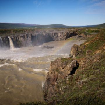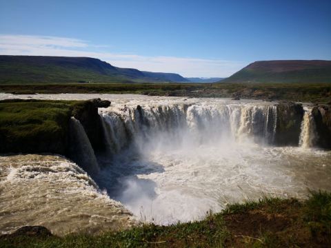 神之瀑布在冰岛著名的米湖附近,得名于一个传说,在公元999或者1000年的时候,冰岛皈依基督教,维京人信仰的神像被投入了这个瀑布。