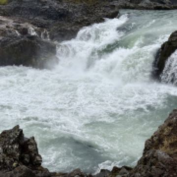 神之瀑布就在1号公路出来不远,而且停车即可走近观全貌。瀑布的落差没有那么大,还可以看到高手在玩皮划艇。