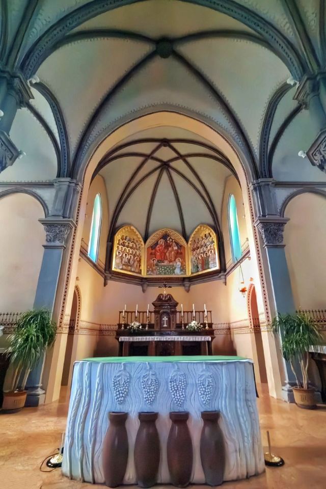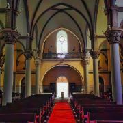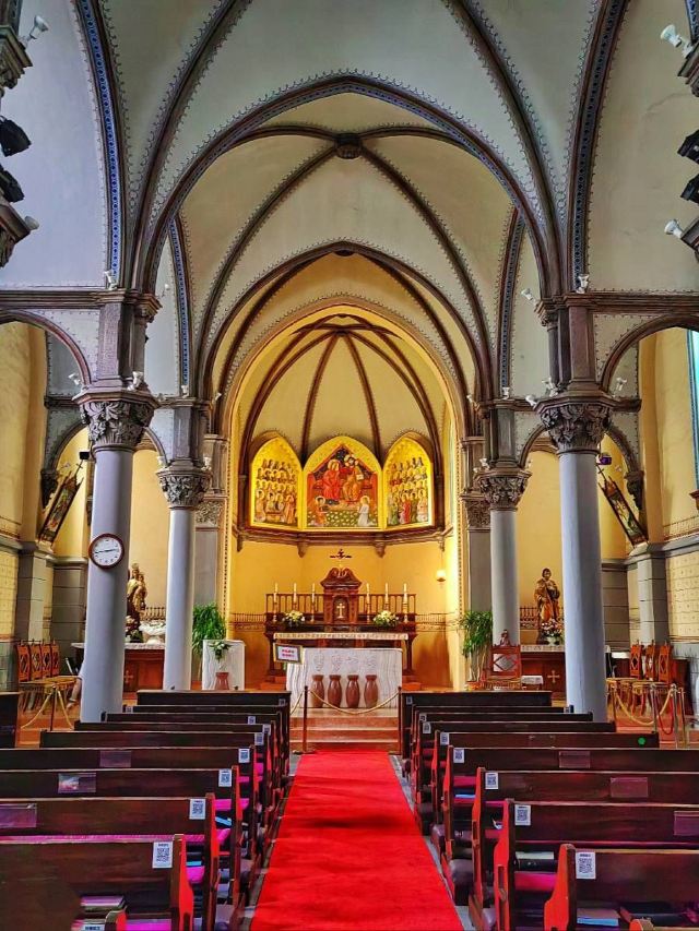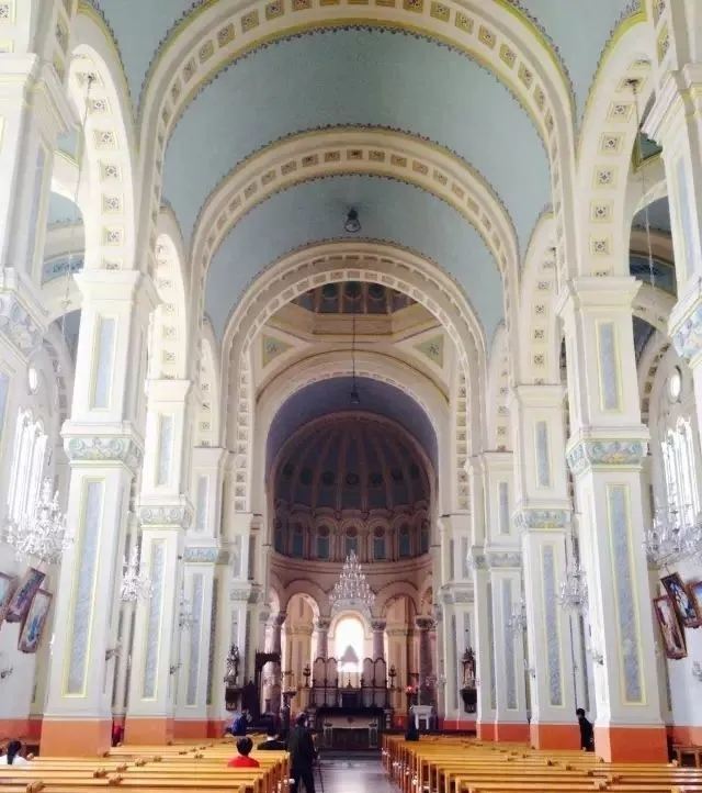 堂内为三通廊式,内墙彩绘壁画,装饰华丽,西开教堂是天津教堂中规模最大的一座。