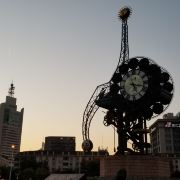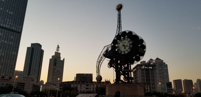 世纪钟高达40米左右,大部分由金属制成,在世纪钟旁边就能看到内部的钟表骨架,众多的零件咬合在一起,共同支撑着前面表盘的分秒不差,做工的精密让人赞叹。世纪钟整个呈黑色,上面有代表12星座的浮雕等装饰,每天晚上广场会亮起暖黄灯光,结合钟表本身的复古感觉很有质感。这里周围则是海河两边的繁华街区,所以到这里拍摄夜景也是很多游客的选择。
