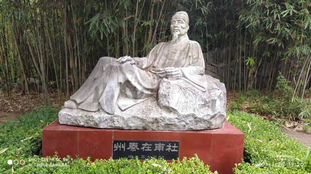 5分 超棒南郭寺,又一座千年宝刹,山下是天水成纪博物馆,铁门紧锁,看得到门内有人,只是无人应答,遂询问了正在休闲的当地居民,确定此馆基本常年不对外开放,不得不放弃,半山腰建有邓宝珊将军纪念亭,邓小平爷爷题写,山上才是南郭寺,有热情好客的出租车在牌坊旁边恭候,往返单人费用20,停车费5,步行上山亦可,只是费时费力,关键是个别拐弯处太陡,容易损伤膝盖。寺庙门票20,继续爬楼梯后,方见庙门。南郭寺,隋代已具规模,感觉初建时间应该更早,只是出名较晚而已,不过无据,庙内除古建外,看点有,一是侧柏一棵,树龄约2500年,春秋古柏,南山古柏,皆指之,二是唐柱基石,仍在,三是隋代舍利塔遗址,未见,询问一寺内人,未知,四是杜少陵祠,光绪年间改建,有碑为记,霍松林先生题写‘诗史堂’,杜甫曾流寓秦州,南郭寺也留下了足迹,有诗为证,所以建有诗廊,泉亭,塑像,最有价值的是‘老杜秦州杂诗碑’,明成化十九年镌刻,同年始建伏羲庙,都是天水历史文化大事记,南郭寺占地面积着实不小,远望山顶还建有佛塔一座,寺内也在大兴土木,略显杂乱,不过主体建筑都还照常开放,寺内游客寥寥,香火不旺,老树新芽,绿意盎然,树影婆娑,一派静谧,古殿古树,荫庇子孙,佛国人间,千载悠然。