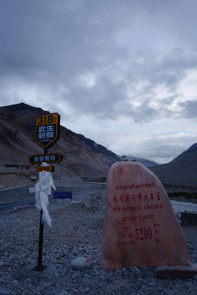 ⛳️行程:早上六点从日喀则出发,下午两点左右到达珠峰大本营,再返回山下的定日县,全天十几个小时大部分时间行进在5000米海拔以上的高原,大部分路途已经铺就了黑色的沥青,车行还算平稳。 我们的车只能停在珠峰脚下,换乘指定的小巴车后继续行进约三十分钟左右,这段上山的路颇是颠簸,抵达珠峰大本营后需步行二十分钟左右登上珠峰观景台。