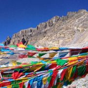 据说珠峰天气多变,常常因雨雪而无缘珠峰真面目~我们很幸运,近在咫尺的珠穆朗玛雪山,在蓝天、白云下闪烁着耀眼的银光,山口满是行者悬挂祈福的经幡,被阵阵掠过的山风吹得瑟瑟作响~