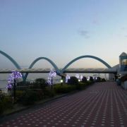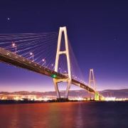 名古屋跨海大桥排名世界第七位,是世界级规模的海上斜拉桥。从名古屋港东开始,分别有“名港东大桥”、“名港中央大桥”以及“名港西大桥”3个大桥。入夜时分,红、白、青色的灯给大桥披上了迷人的外衣,展现出一种令人陶醉的美。不少游客从游轮上就近观看大桥的丰姿。
