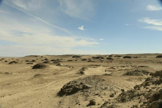 托克逊的雅丹地貌景区,由上千个各具特色的土丘组成,呈西北——东南方向分布,绵延5公里。或动物,或建筑,或行云流水,形神兼备。和乌尔禾雅丹相比较,没有那种高不可攀的感觉,各种造型多了些小巧玲珑和天真稚气。托克逊雅丹附近还有怪石山、红河谷,一年四季都适合旅游、观光。尤其冬春季节,这里是乌鲁木齐及周边市县驴友津津乐道的目的地。