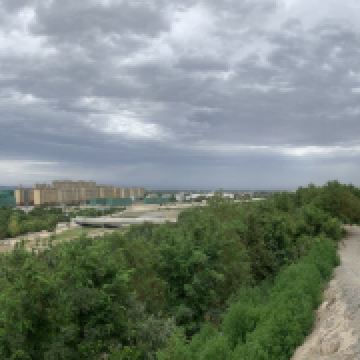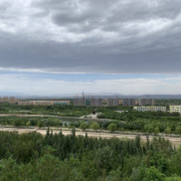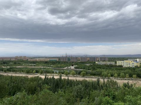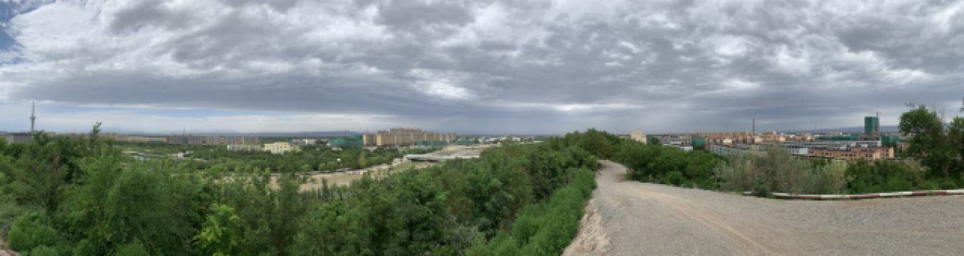 公园最东边,是一座小山,高度在30米左右,但在零海拔的托克逊,这无疑是制高点了,沿着阶梯拾级而上,登到山顶花不了几分钟,但是山顶的景色却是绝美,在山顶,可以清楚的看见,托克逊被群山环抱在盆地中央,远看消失在地平线的茫茫大山,不禁让人感叹中国之地大。