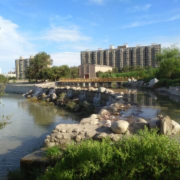 白杨河公园有观景栈道,可观赏河边的小湖,有假山小瀑布,亭阁长廊等景观。是当地居民休闲娱乐的城市公园。