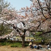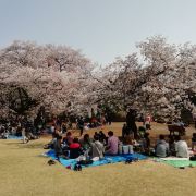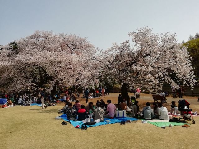 虽然春风可以掀起地上的沙子,也无法影响大家席地而坐,开始自己的花見,樱花树下的野炊。