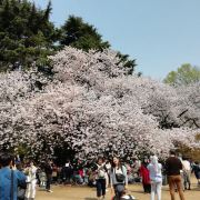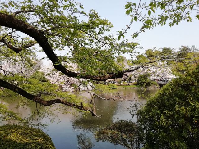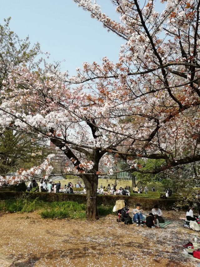 春天的时候,这里完全就是粉色的梦幻世界🌸。大片的樱花树竞相绽放,风一吹,花瓣如雪般飘落,草地上野餐的人们、穿梭在花树下拍照的游客,构成了一幅绝美的春日画卷。我去的时候,还碰到了当地人穿着传统服饰在赏花,氛围感拉满。