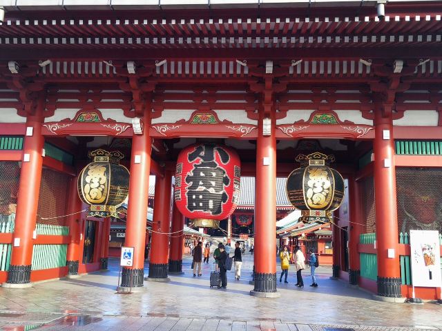 浅草寺 宝藏门又叫做“仁王门”,是浅草寺的山门,匾额上题写着“浅草寺”的字样,是游客拍照留念的热门景观,也是从仲见世商业街通向寺内的重要必经之路。自建成来,这座山门曾屡遭火灾,又数次重建,现在游人看到的这座建筑内,是设有现代消防设备的。