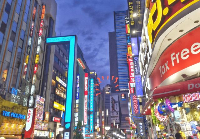 从JR新宿站往东北边走不久就是日本较有名的歌舞伎町,每到夜晚,可以看到纷繁复杂的霓虹灯招牌、各种风俗店,令人感慨万千,不建议太晚前去。