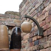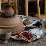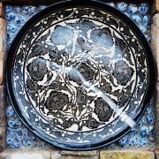 享誉世界的“大老碗”瓷器,是陈炉独有的传统青花瓷,当地人叫做蓝花。上面绘制的写意花鸟鱼虫简练概括,无论是聊聊数笔的兰花、苜蓿花,还是缠枝牡丹,或一尾小鱼,绘制在碗和盆碟上立即就鲜活起来,质朴的民间意趣中呈现着浑然大气的品格。在陶碗上轻轻一叩,就发出清脆宛如磬玉般的动听声音。除了青瓷外,陈炉70年代末还生产一种孔雀蓝瓷瓶,它以宝石般的蓝色辅以描金绘画装饰,别有一种娇艳富贵的世俗气息。面对着这些精美绝伦而古朴大气的陶瓷工艺品,不得不让人惊叹陈炉瓷镇的非同凡响。