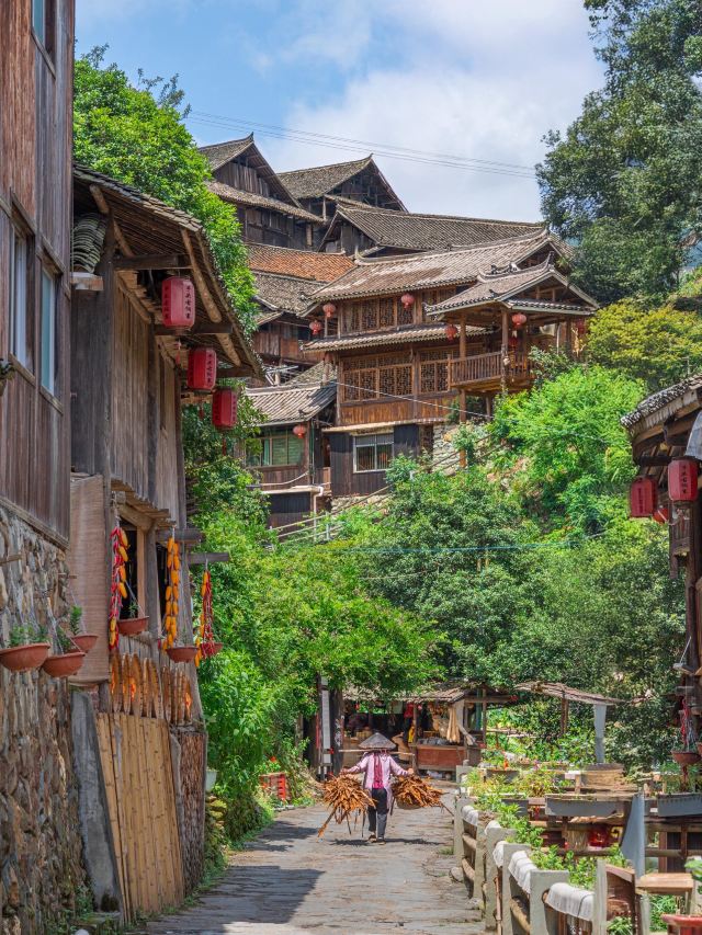 5分 超棒穿过寨门,踩在青石板铺就的古驿道上,时光仿佛瞬间倒流。寨子里没有喧嚣的商业街,没有熙攘的游客,只有古朴的吊脚楼和淳朴的侗族人家。