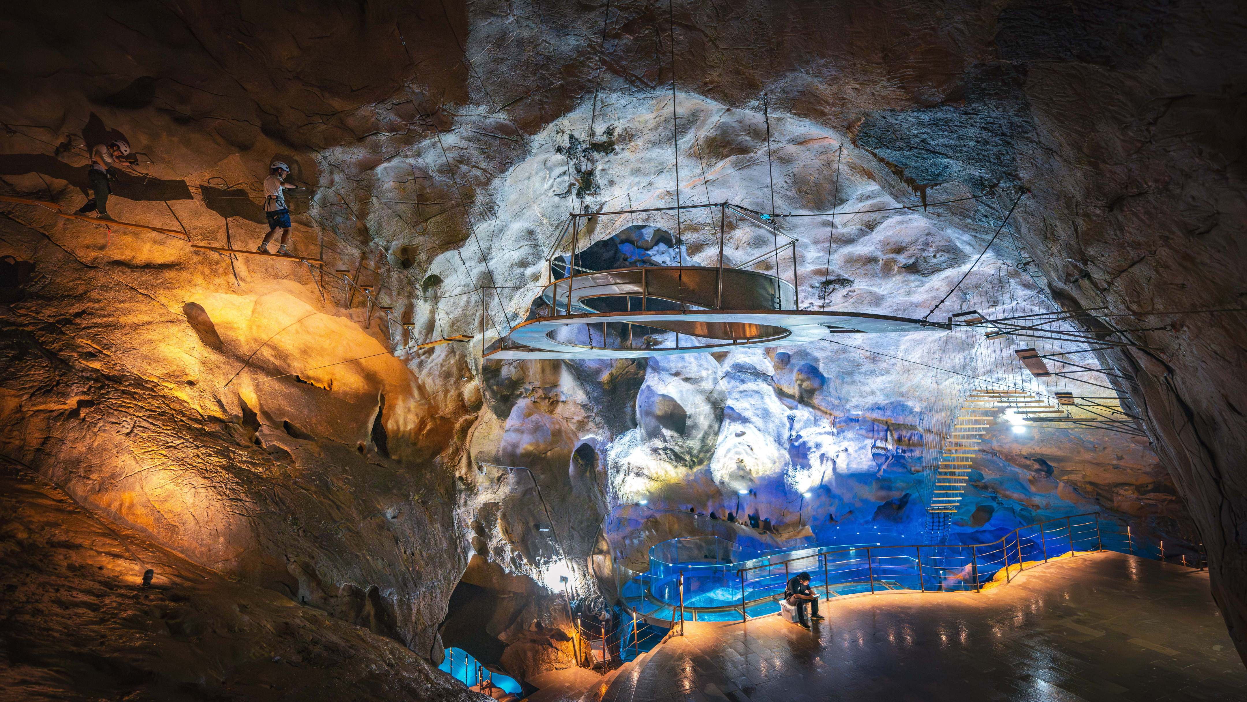 乘船上山在西游幻梦间穿梭,体验恒温18度的神秘溶洞。