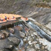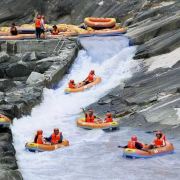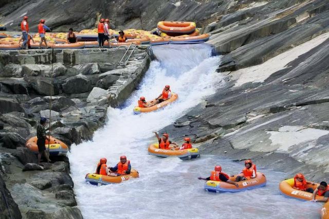 雪山激流回旋漂流位于浙江桐庐县合村乡,不同于许多传统漂流,雪山激流回旋漂流有着别具一格的网红气质和桀骜个性。绝壁千仞前,您可以沉思数百万年前冰河世纪的壮丽遗迹;深V回旋中,磅礴水量为您开启激流压顶的澎湃旅程;芝麻开门后,神秘溶洞体验秘境水道中遐想未知的魔幻魅力;璀璨水门下,五彩航道让您领略奥运会专业比赛的现场激情。