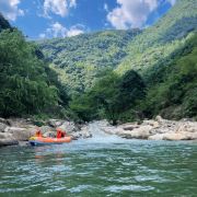 5分 超棒一个字!爽!而且对1.2米儿童很友好的漂流,刺激又不危险~全程差不多2小时左右,中途有烧烤站可以上岸坐坐~建议直接穿泳衣,玩得尽兴!最后一段直接下水混战真的太有趣了!