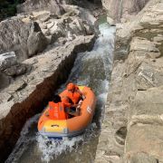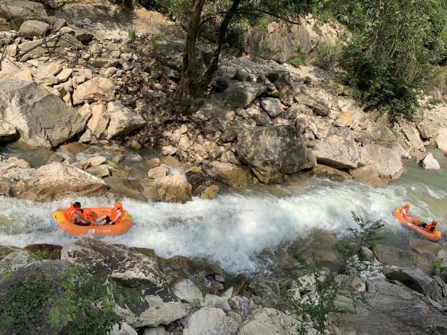 (配图建议:清澈溪水特写+漂流艇激流画面+工作人员协助场景)