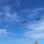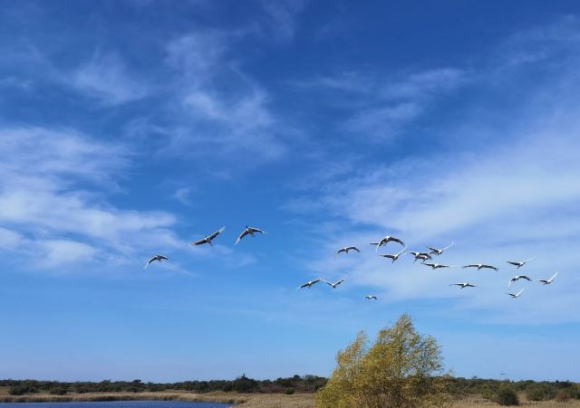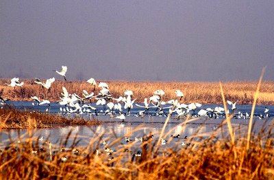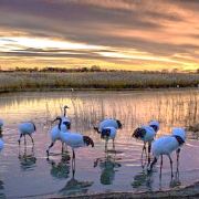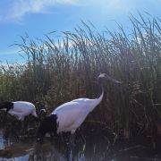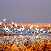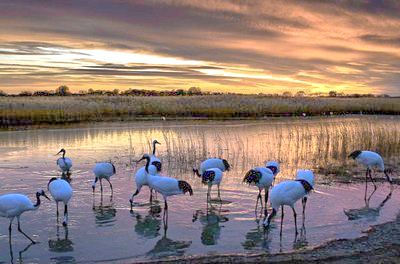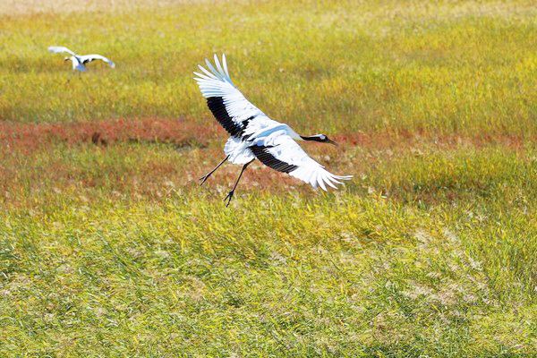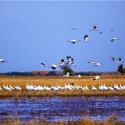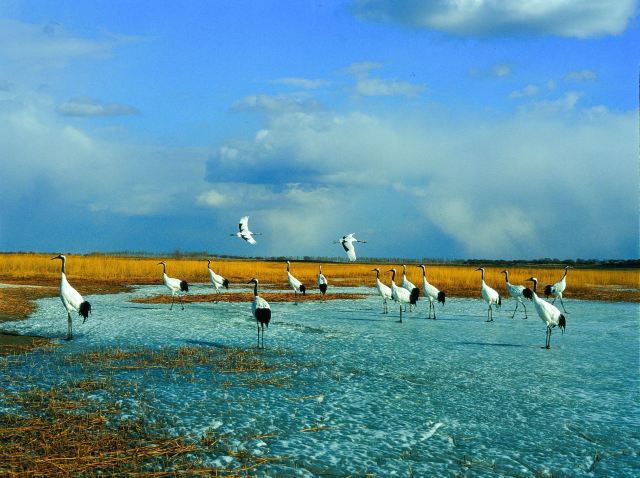 栖息于向海国家级自然保护区的鸟类有173种之多,其中鹤类就有15种,将近占了全世界现有鹤种类的一半,其中珍惜种类有丹顶鹤、白枕鹤、白头鹤、灰鹤、白鹤、天鹅、金雕等,是我国有名的“鹤乡”。